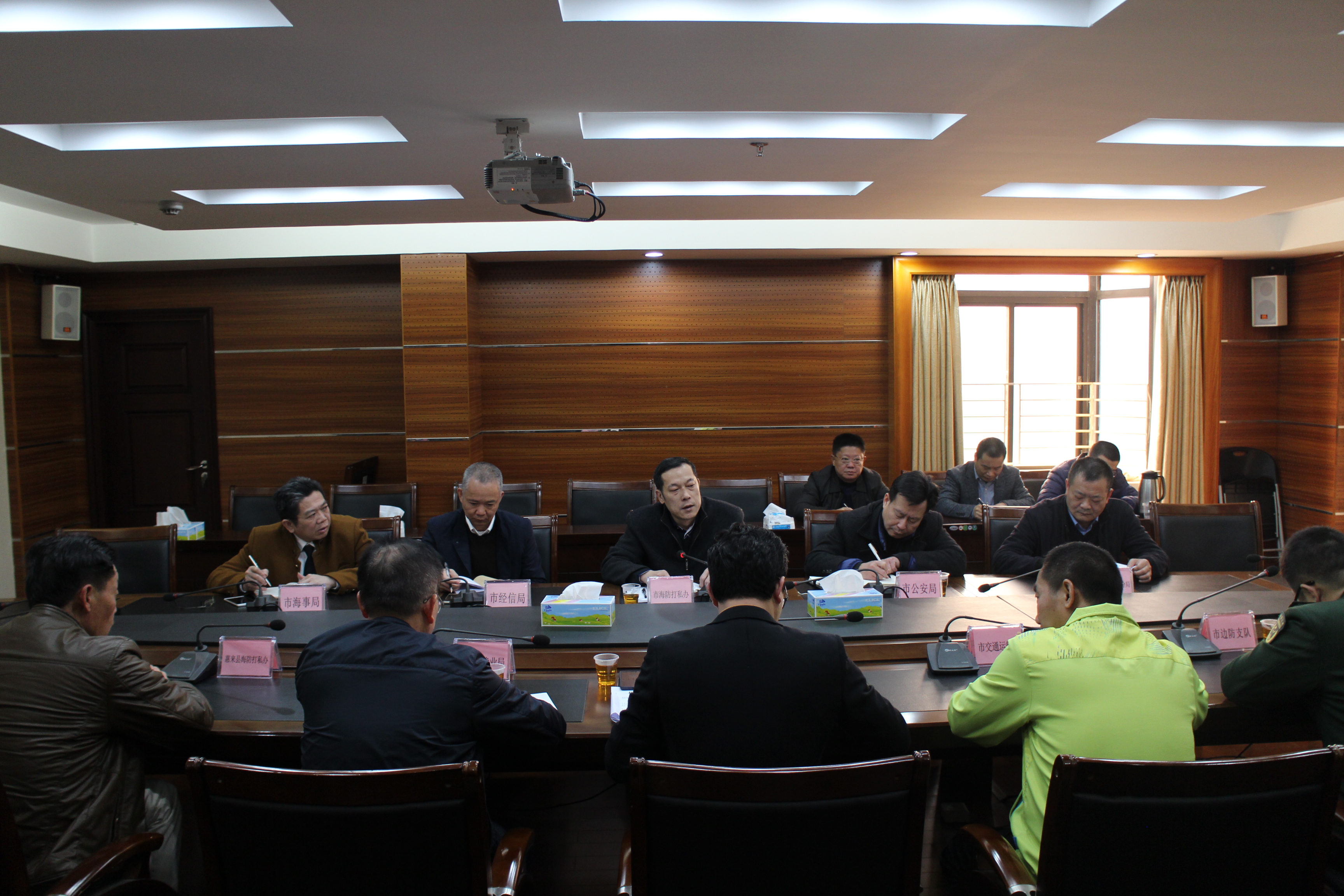 2月9日,市海防打私办在市政府机关大院1号楼601会议室,召开有关反走私工作专题会议。市海防打私办副主任李楚祥传达了省反走私联合督导组在我市召开粤东片区反走私工作会议精神,并就贯彻落实周华山副主任的指示精神,部署加强我市沿海沿江反走私有关工作。
